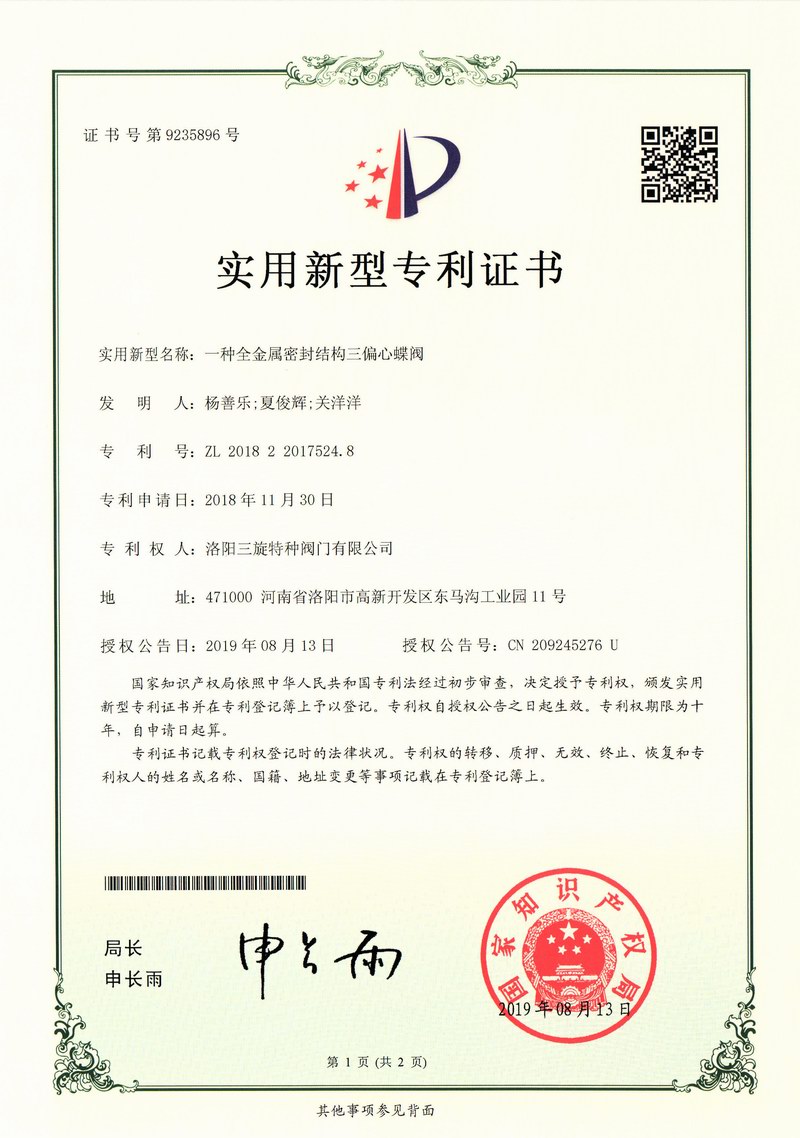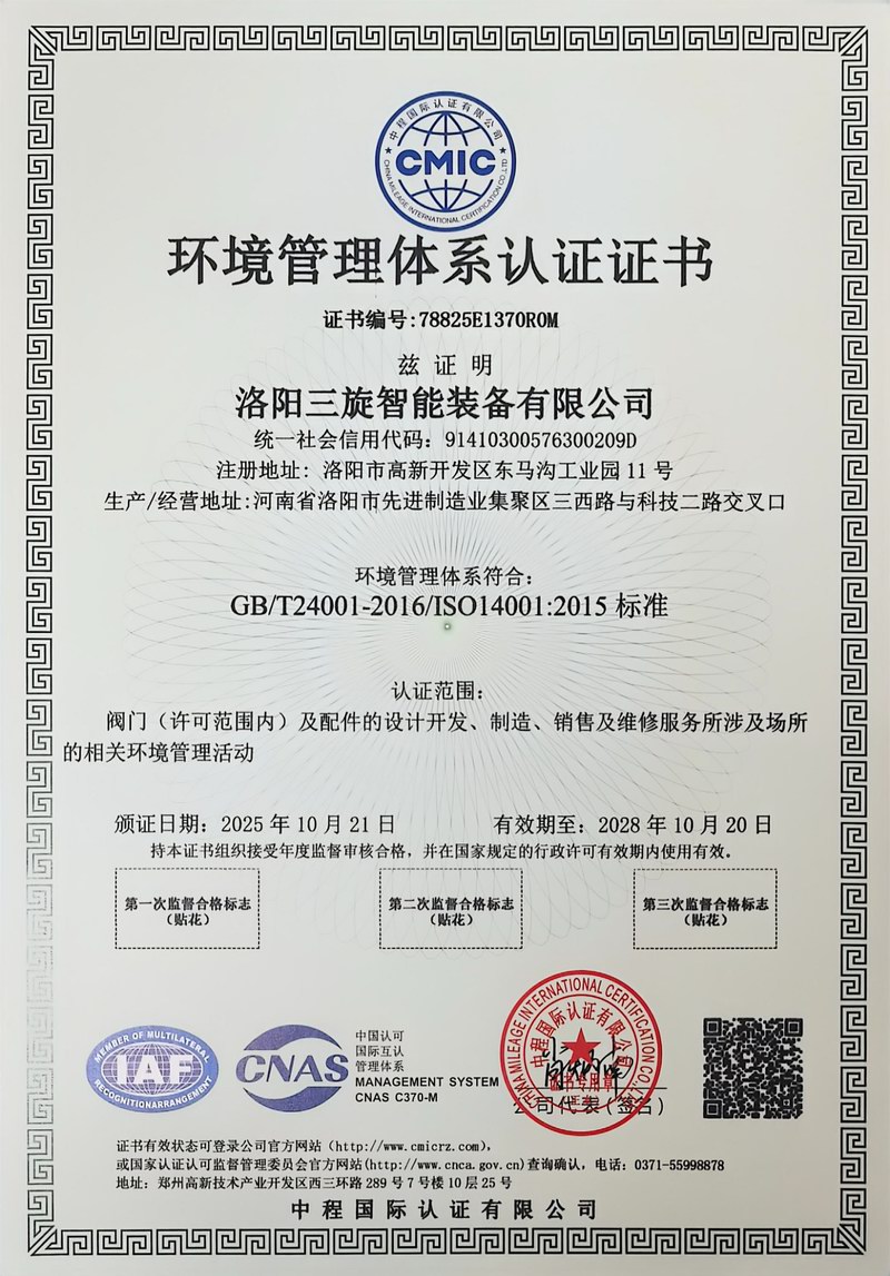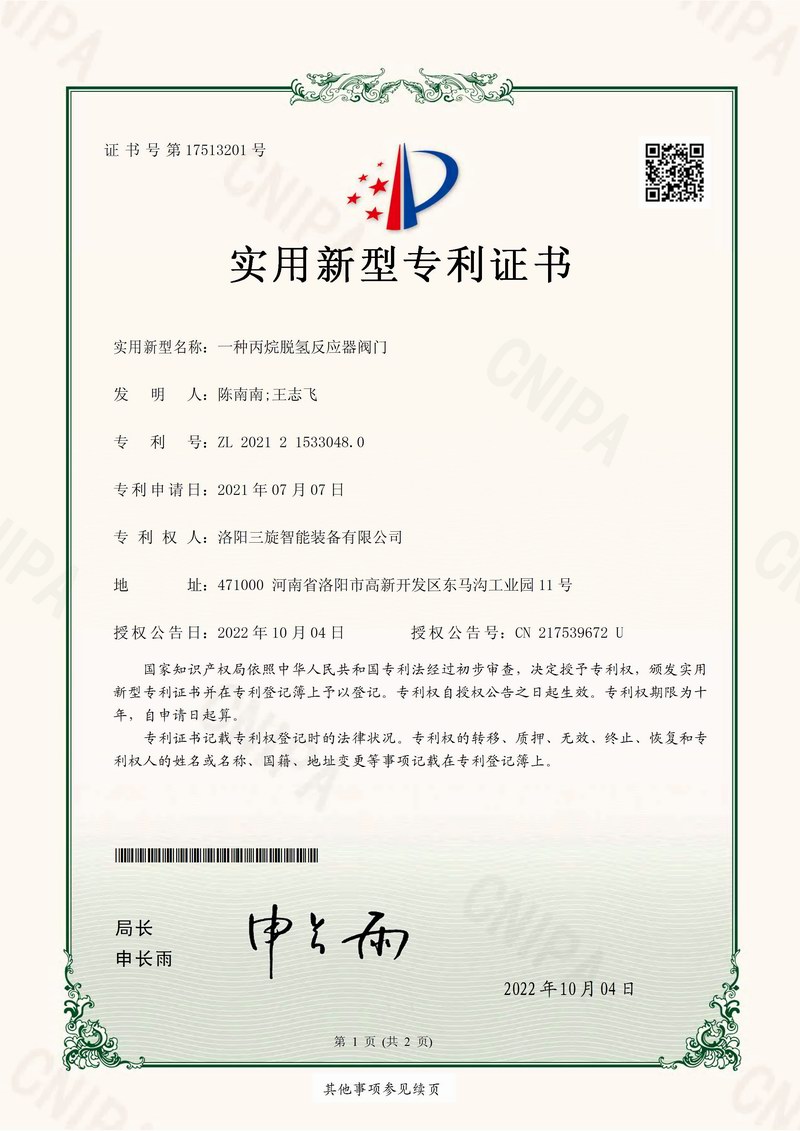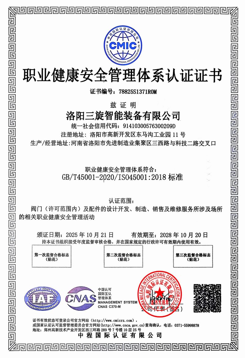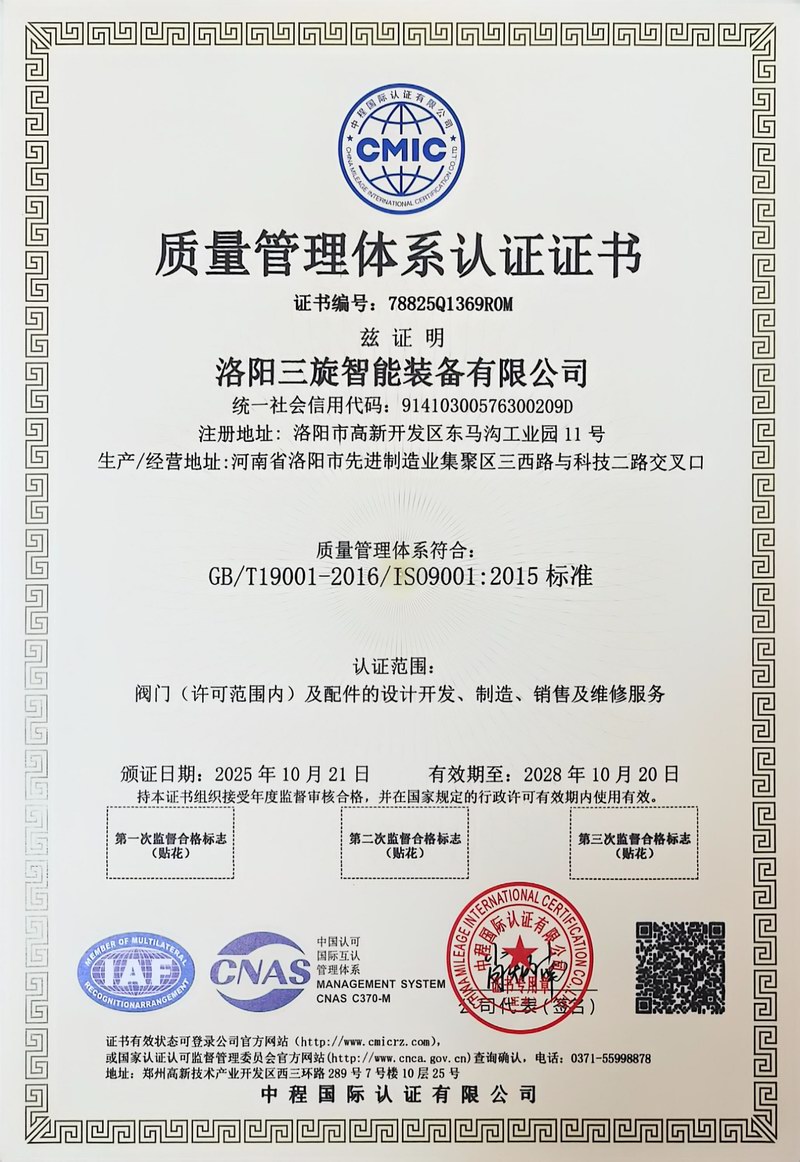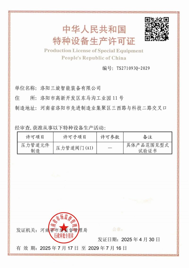 洛阳三旋智能装备有限公司是以“安全、可靠、平稳、长周期”为质量方针,致力于石油化工、煤化工、长输管线、冶金、电力、造纸等领域特种阀门及化工设备的设计、制造、销售、维修为主营业务的技术型企业,力争打造全球特殊阀门优良制造商。